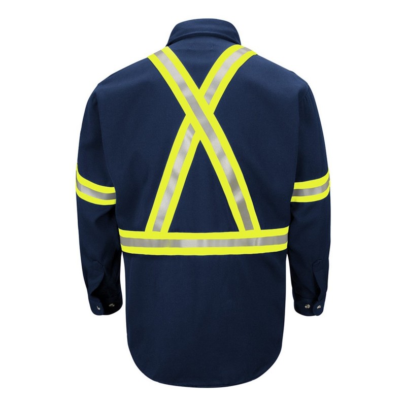 - 360 visibility with front and back 2" flame resistant yellow/silver/yellow reflective striping-CSA Z96 Compliant